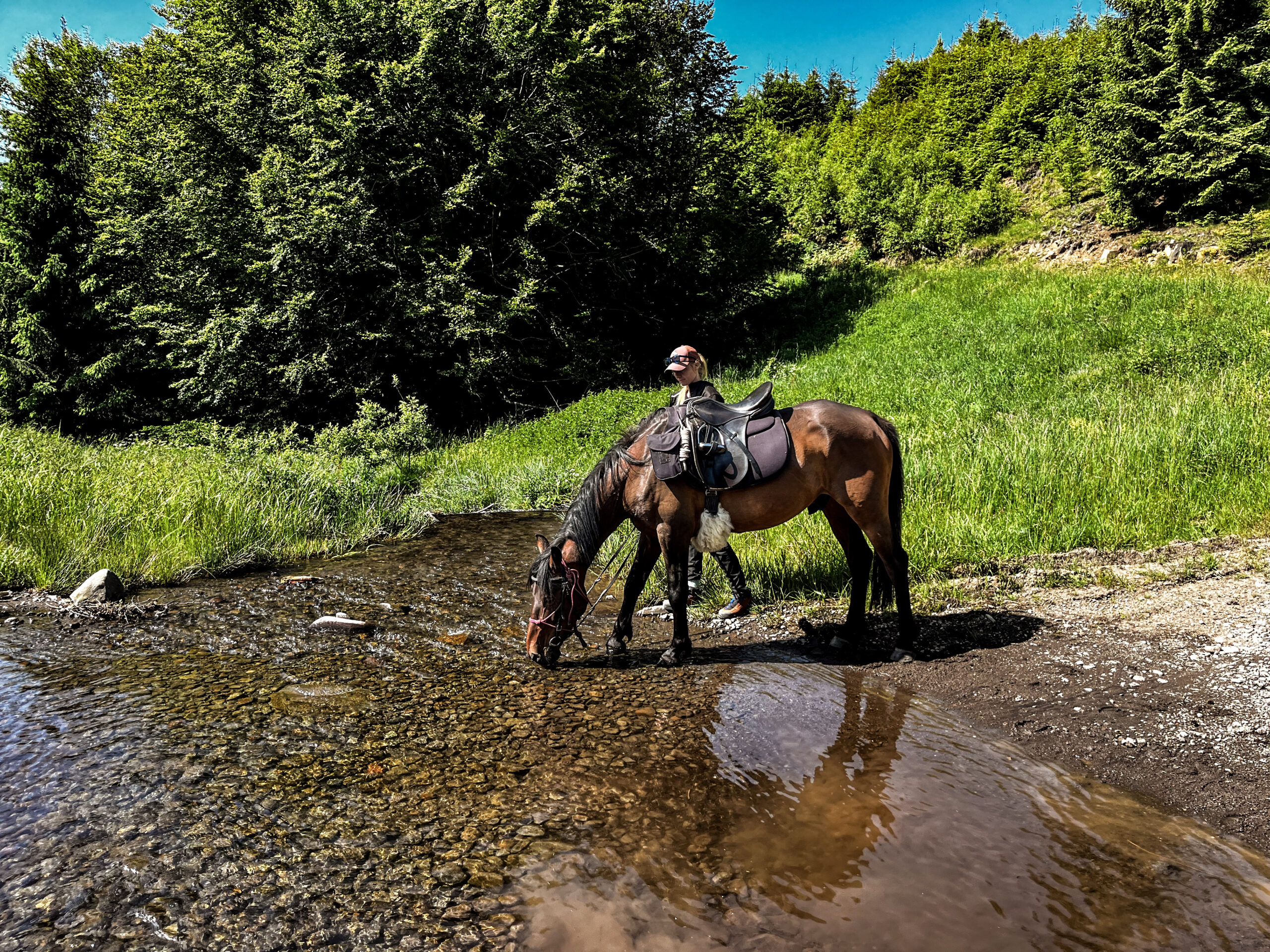 Wir reiten auf 1000–1200 Metern Höhe südwärts nach Székelyvarság – einem der größten und traditionsreichsten Bergdörfer Osteuropas. Es ist ein Tag voller echter Bergritte: steile Anstiege, tiefe Täler, uralte Wälder. Unsere Belohnung? Eine komfortable Pension und ein herzhaftes Abendessen im Herzen des Hochlandes.